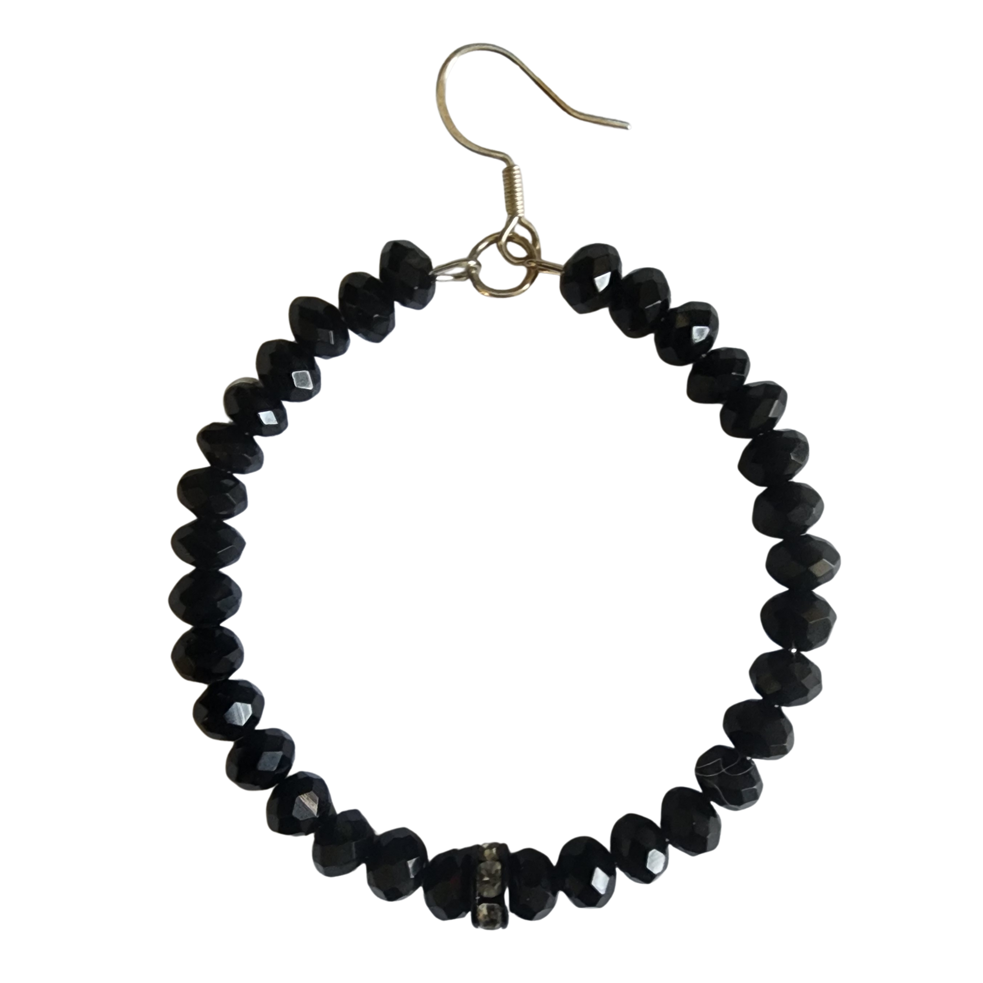 Black sparkle hoops for the fashion-forward individual with a unique and stylish flair. The faceted cut and color will definitely get you noticed! You go, girl! You don’t copy trends, you set them!